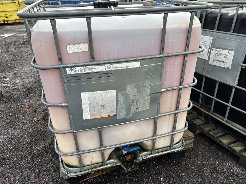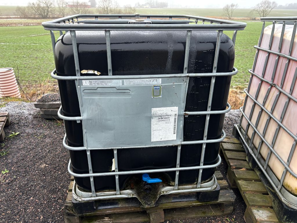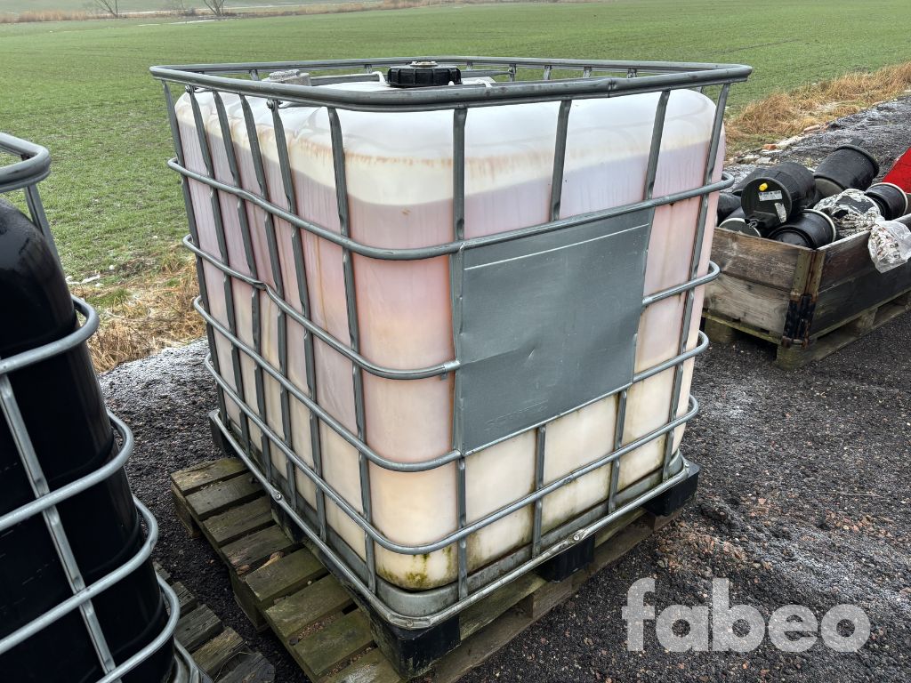 Fabeo, IBC-tank, 1000L, vätskebehållare, vattentank, gödsel, AdBlue, entreprenad, vätskelagring, tank på pall, spillolja, allolja, brännolja