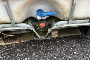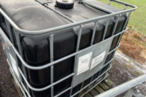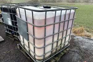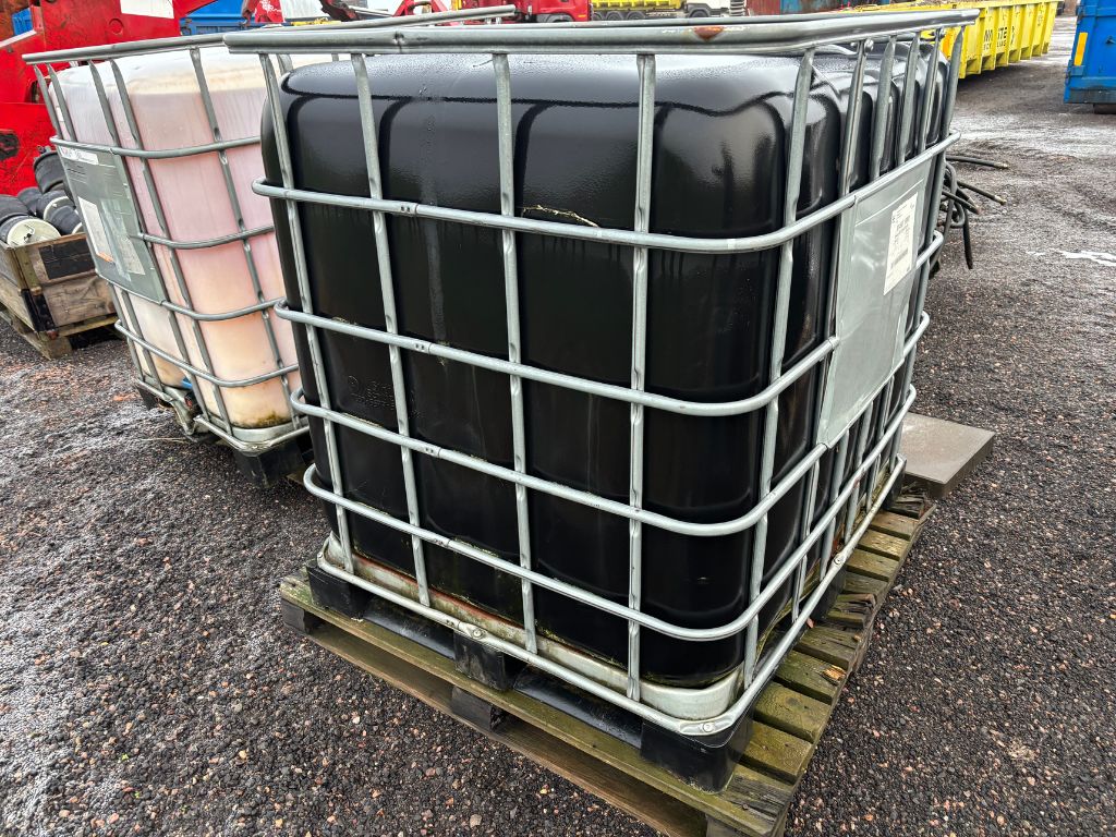 2 st IBC-tankar en med filtrerad pressad rapsolja/bakaxelolja