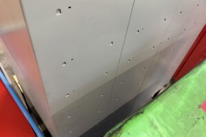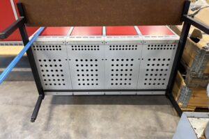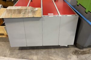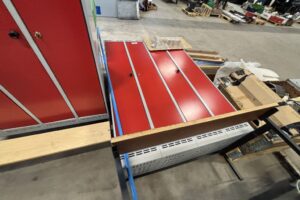 Plåtskåp i röd/grå kulör
