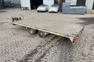 Fabeo, Bålsta-Släpet, XNW581, maskinsläp, flaksläp, släpvagn, tandemsläp, tippbart släp, mekanisk tipp, vinsch, ramper, 3000 kg, 2350 kg lastvikt, aluminiumdurk, entreprenadsläp