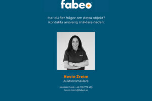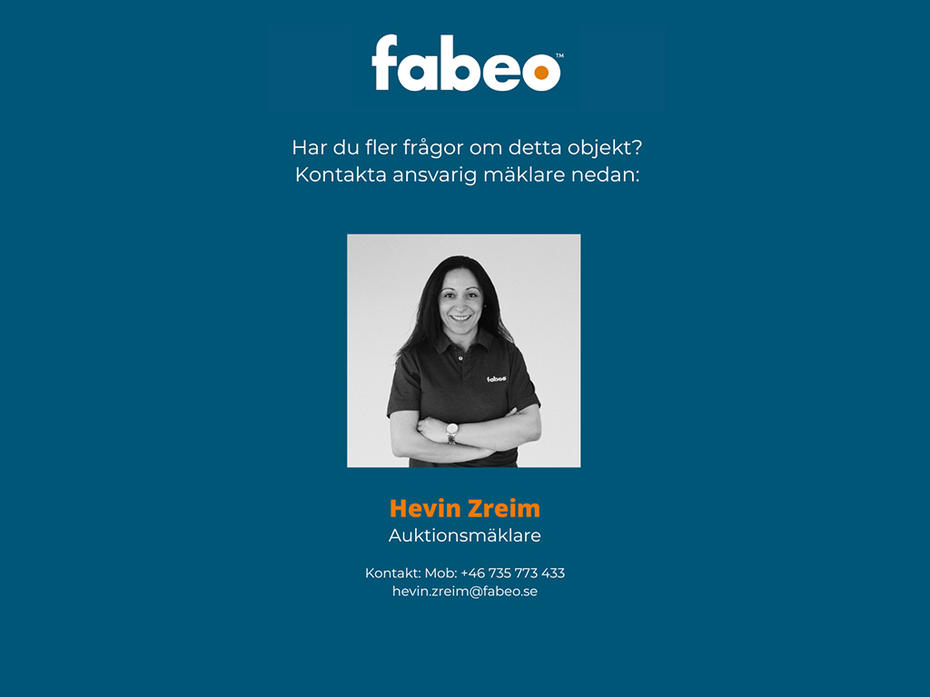 Du som köpare skall alltid kontrollera objektet vid avhämtning. Eventuella anmärkningar härefter beaktas inte. Om objektet skiljer sig väsentligt från objektsbeskrivningen skall Fabeo kontaktas innan objektet transporteras.