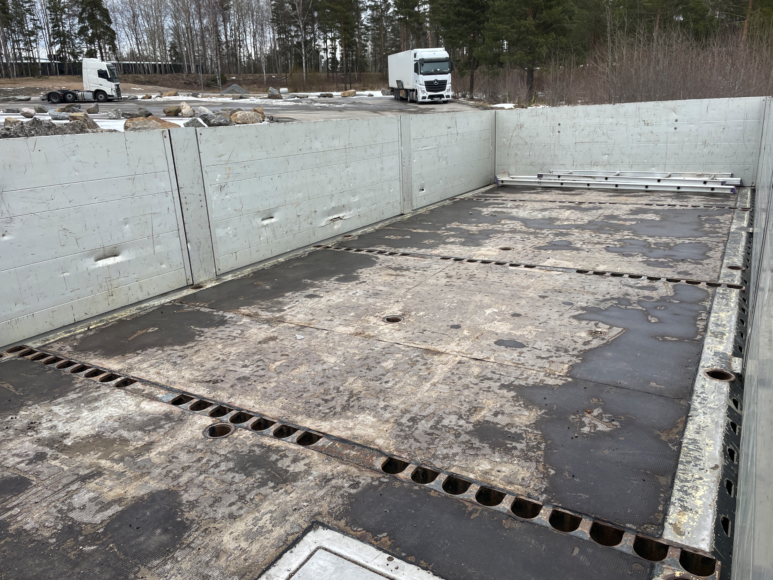Staklåda och stakhål i flakbotten