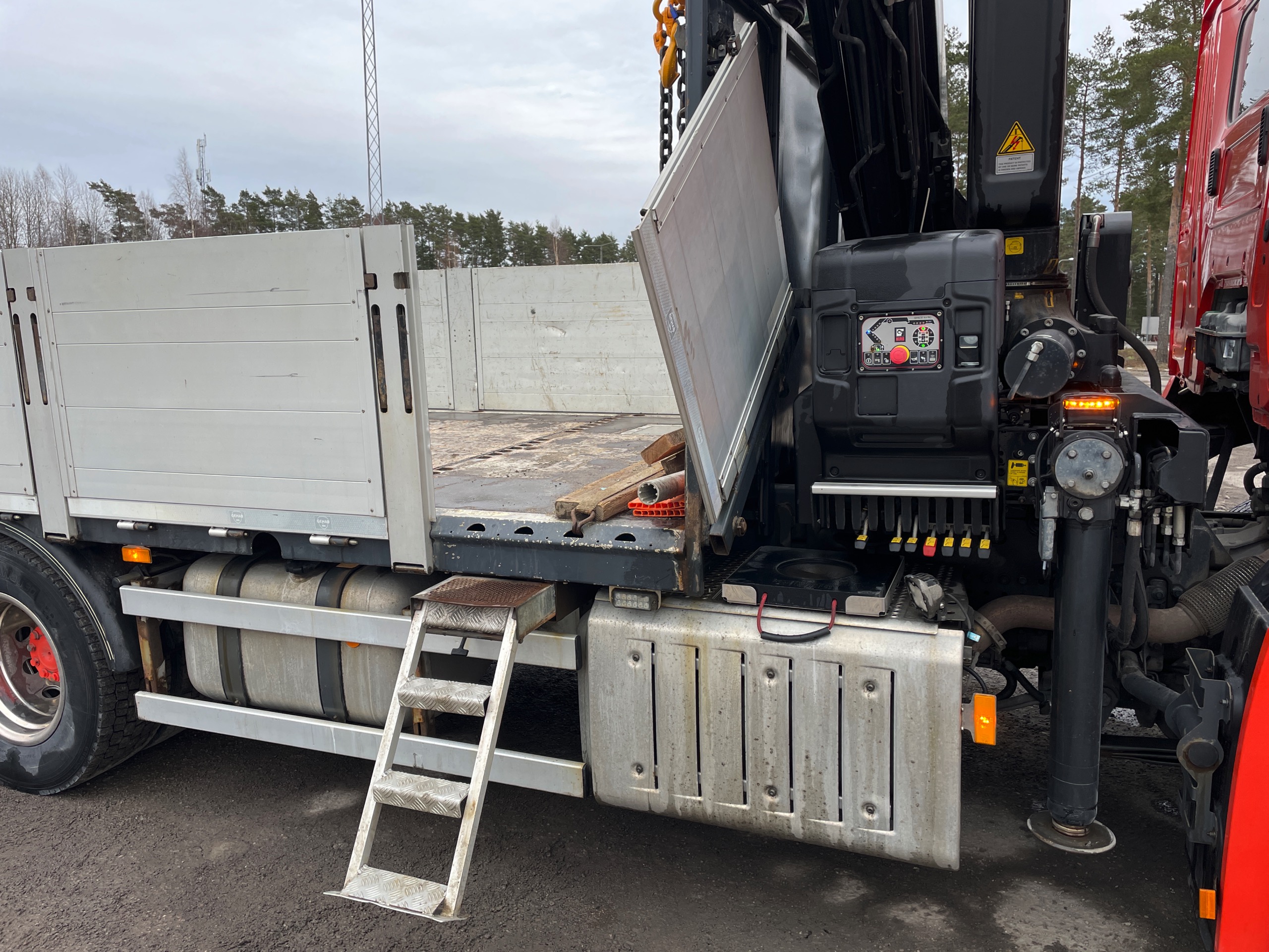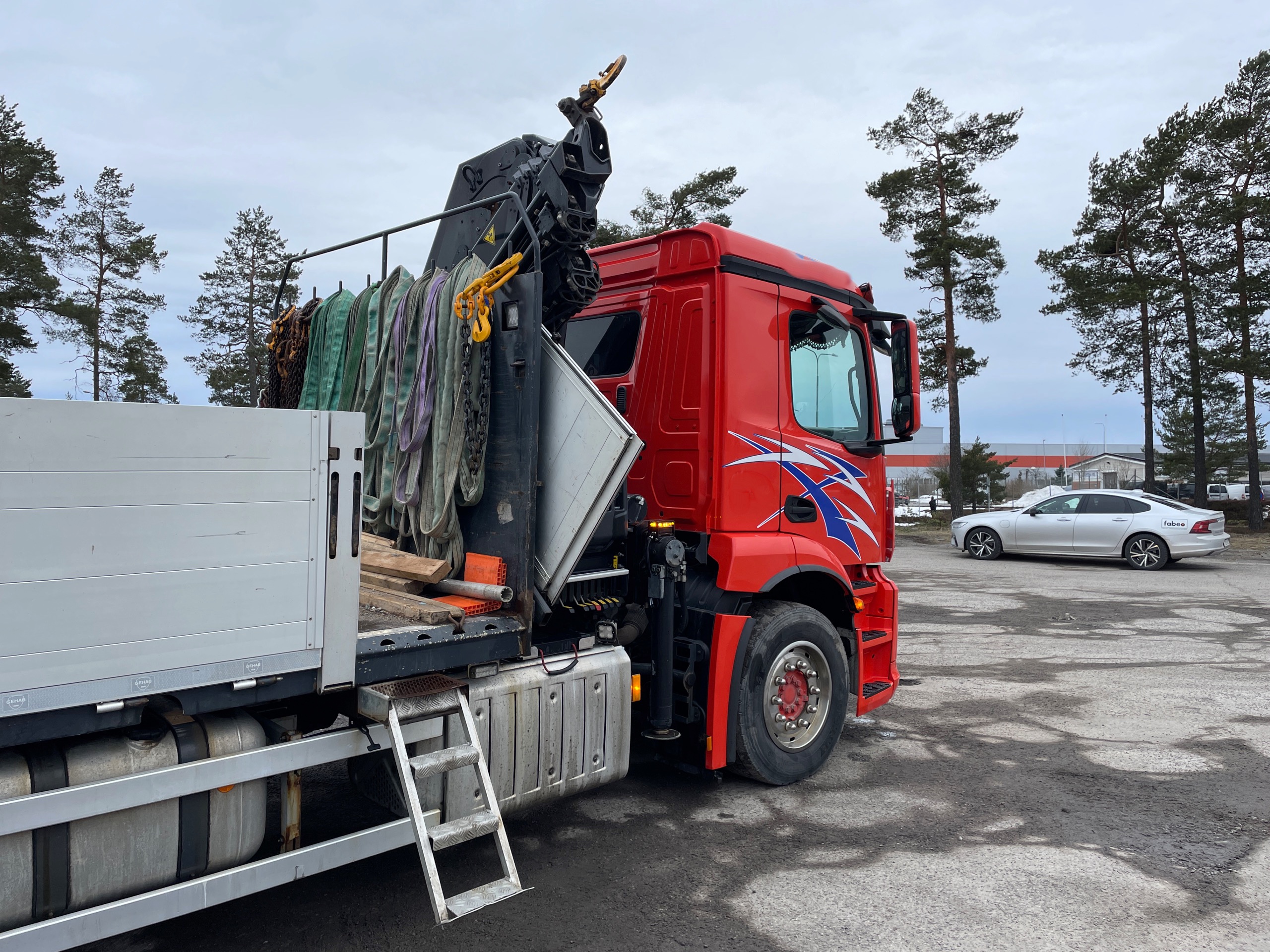 Sökord: Brädgårdsbil, HIAB, kranbil, Antos,