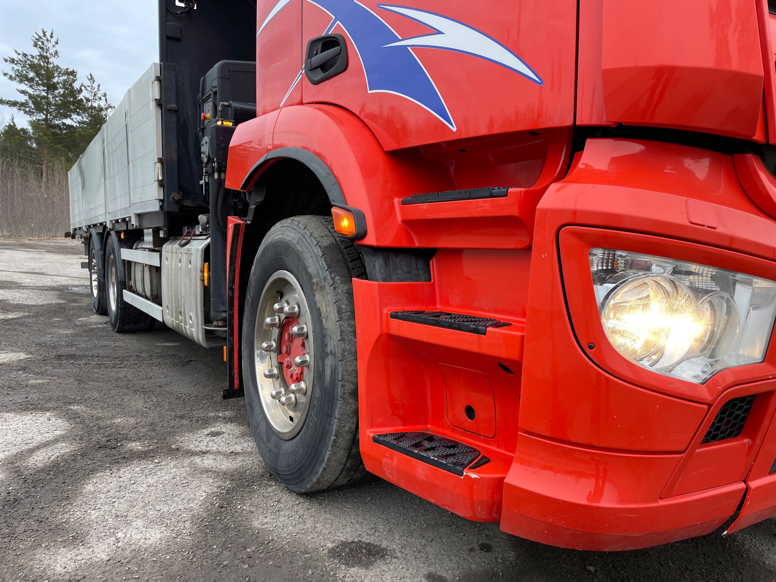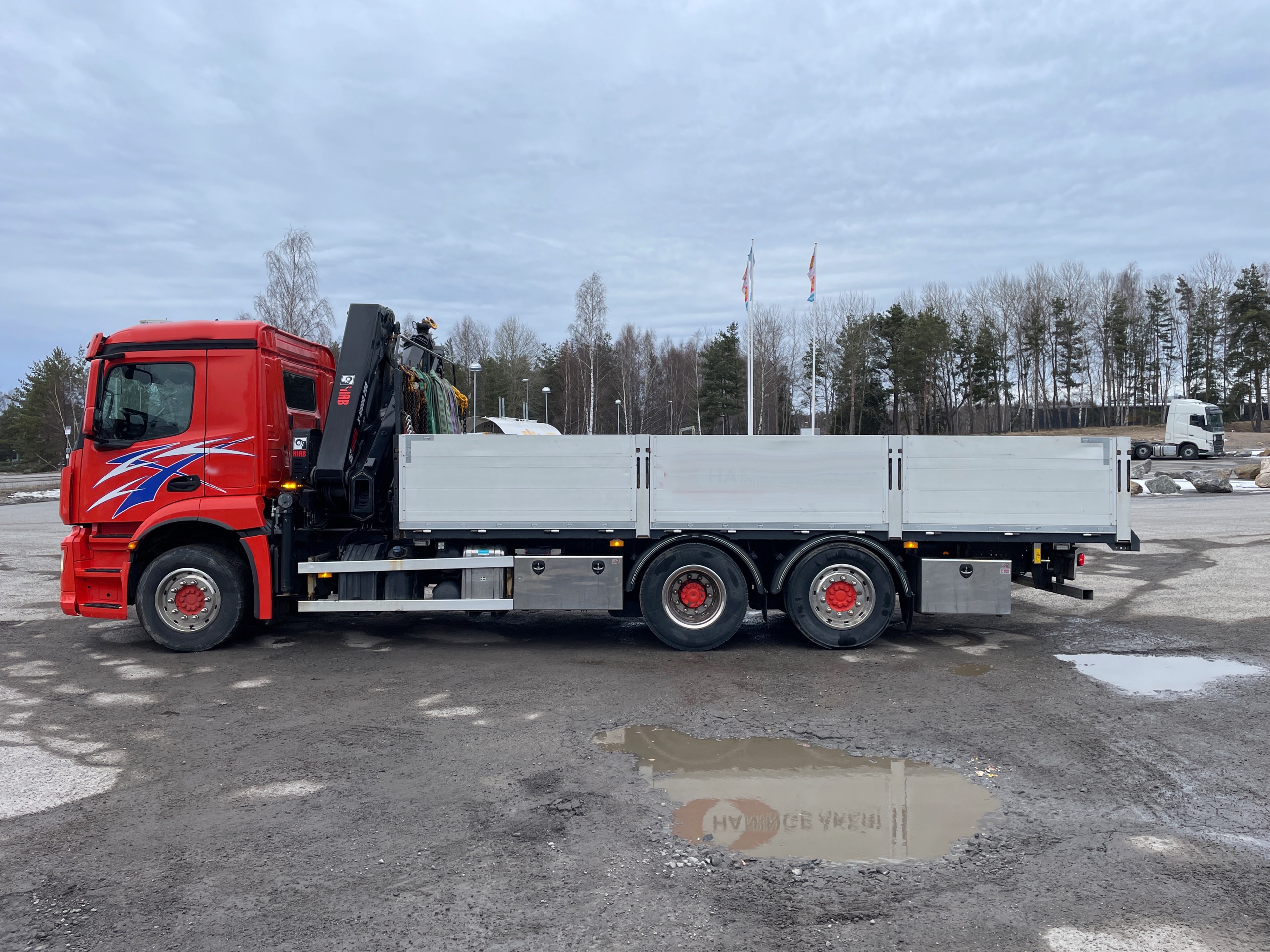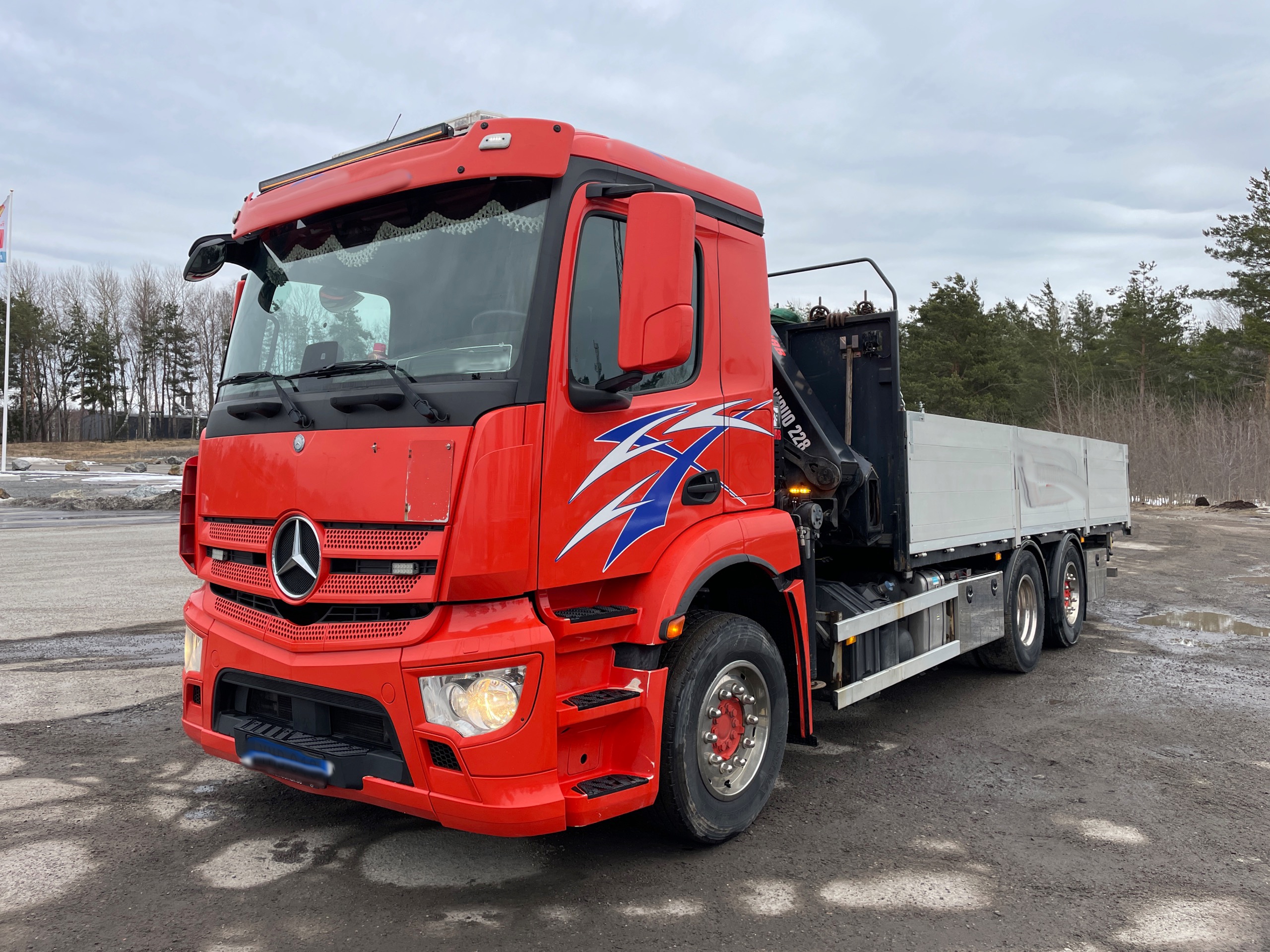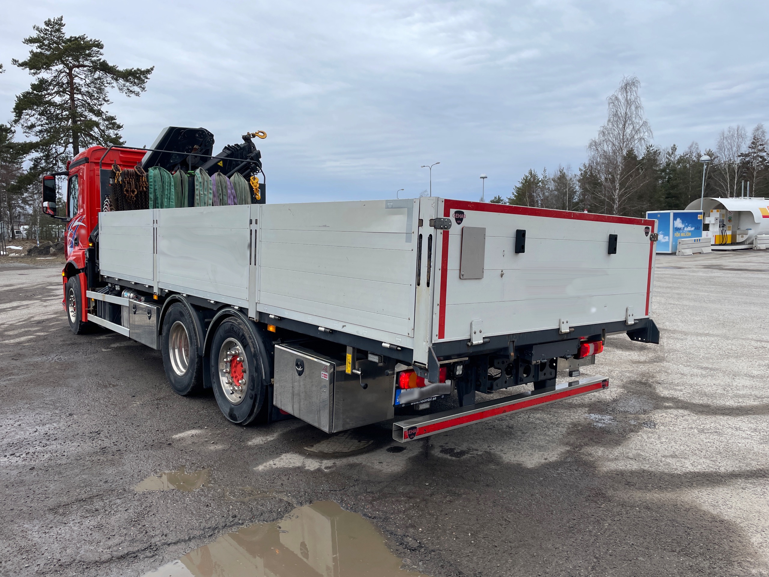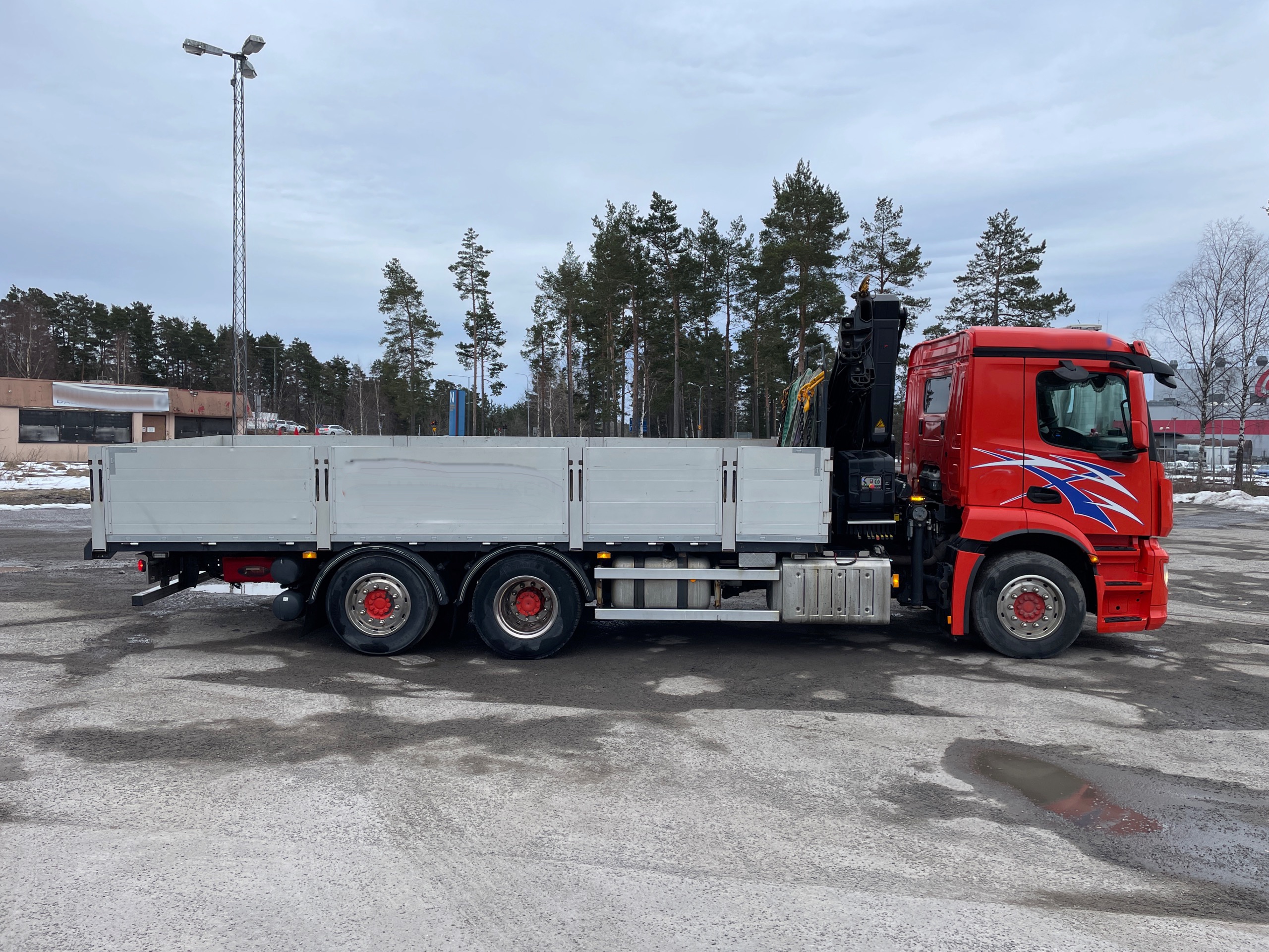 Mercedes Antos 6×2 Brädgårdsbil med HIAB