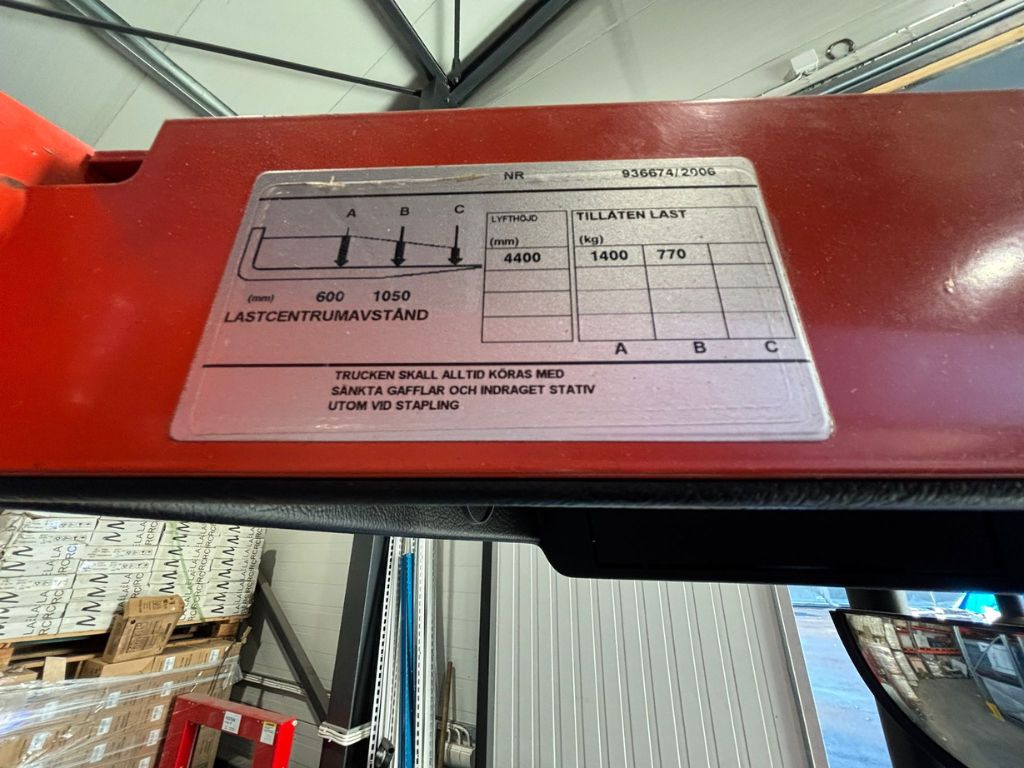 Kapacitet: 2 000 kg vid 600 mm lastcentrum