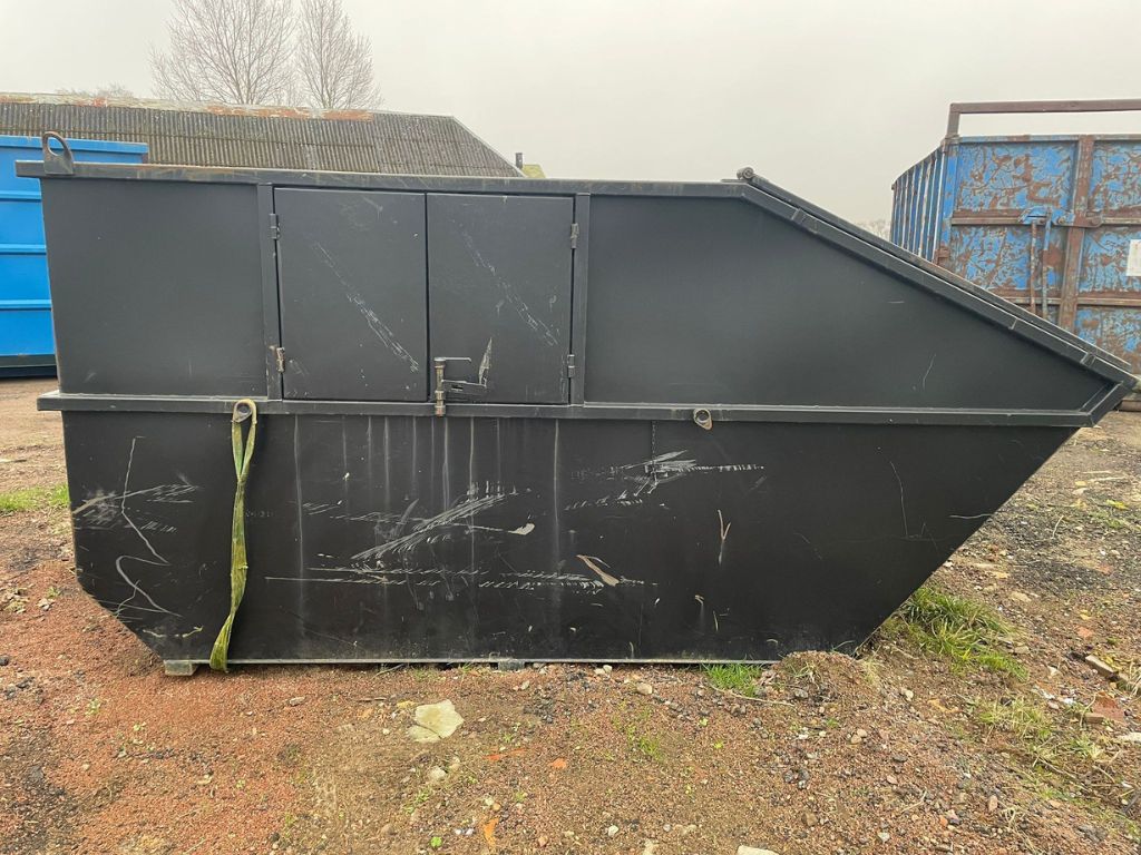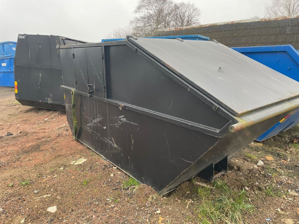Container, Liftdumper, Avfallscontainer, Verkstadscontainer, Täckt container, Fabeo, 10m³, återvinning, svart container, byggcontainer, transport