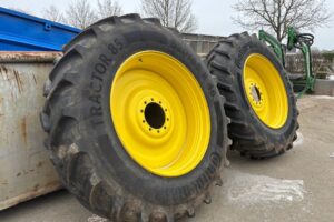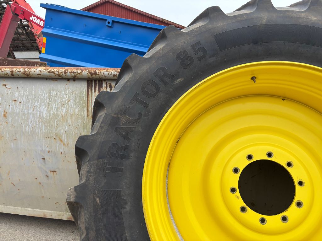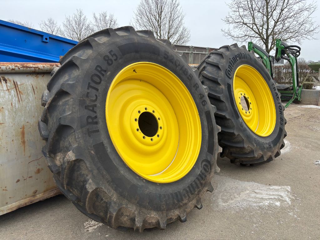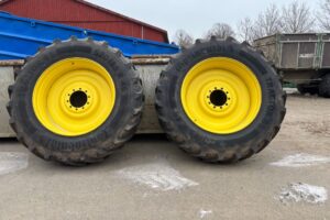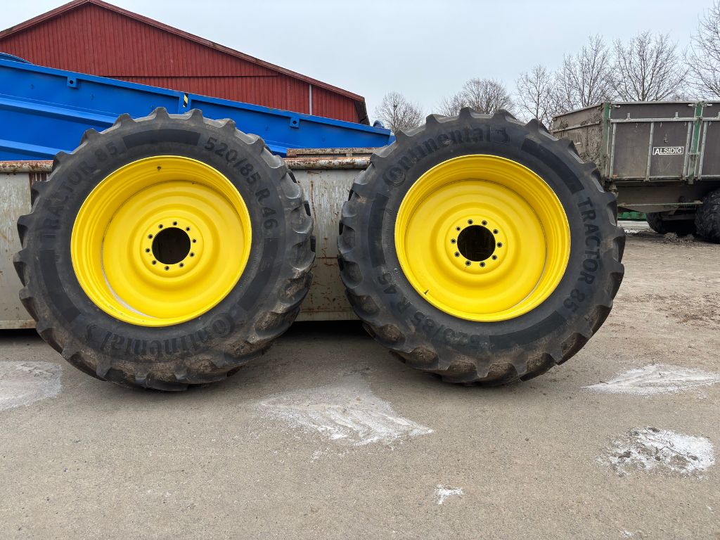 Fabeo, 520/85R46, traktorhjul, Continental däck, bakhjul traktor, traktordäck, begagnade traktordäck, fälgar gul, R46, storlek 46, lantbruksdäck, dubbelhjul, John Deere, New Holland