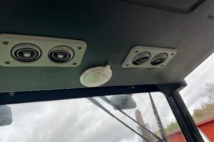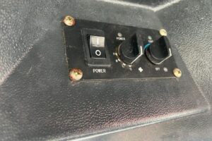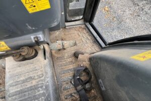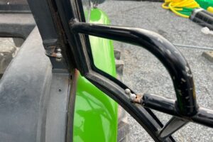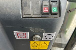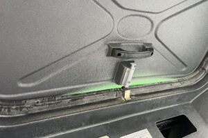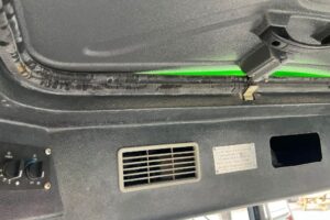 Dörr på vänstersida saknar en del, den går ej att stänga. Hake finns