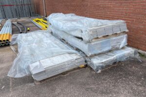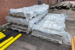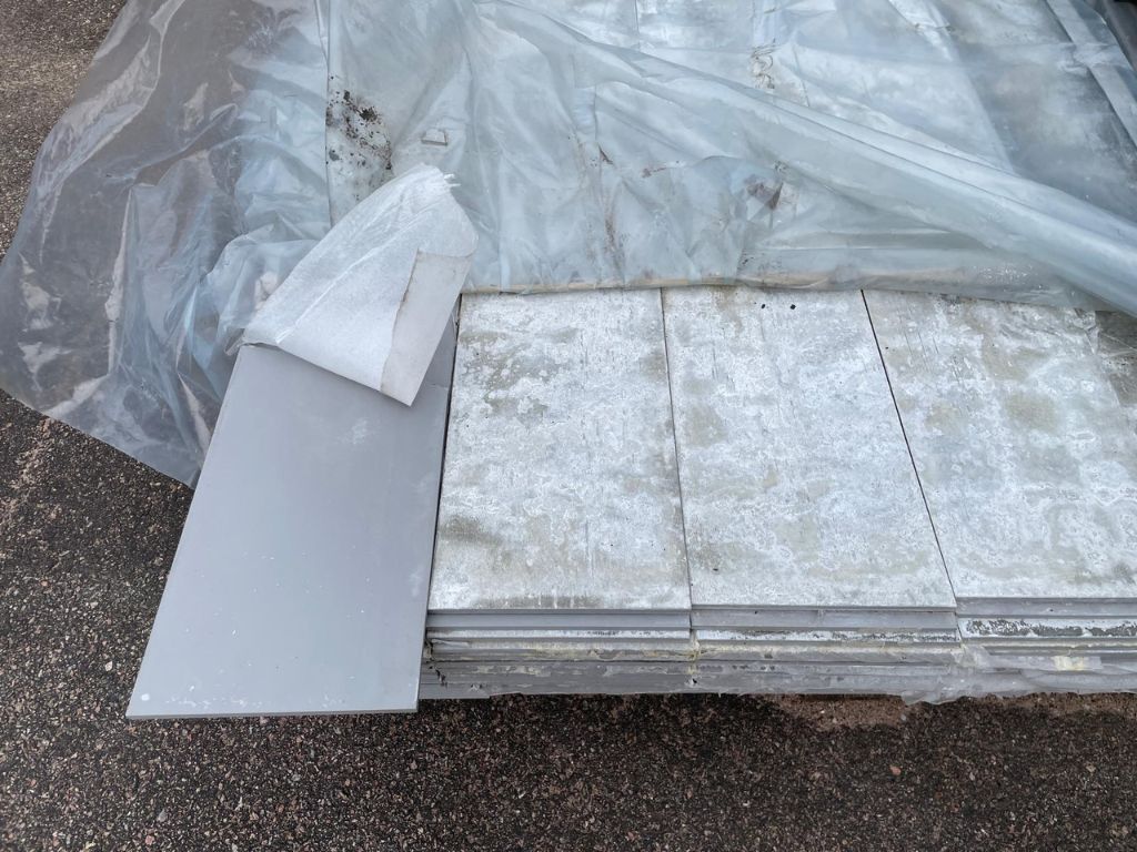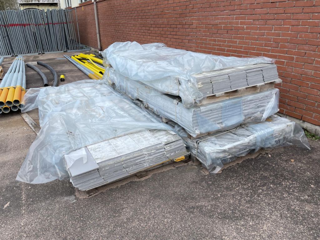 Ett större parti fibercementskivor säljes som de ligger.