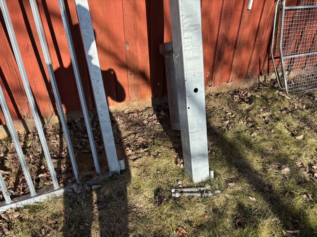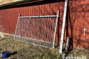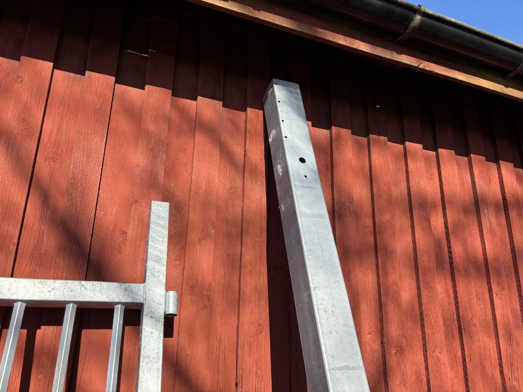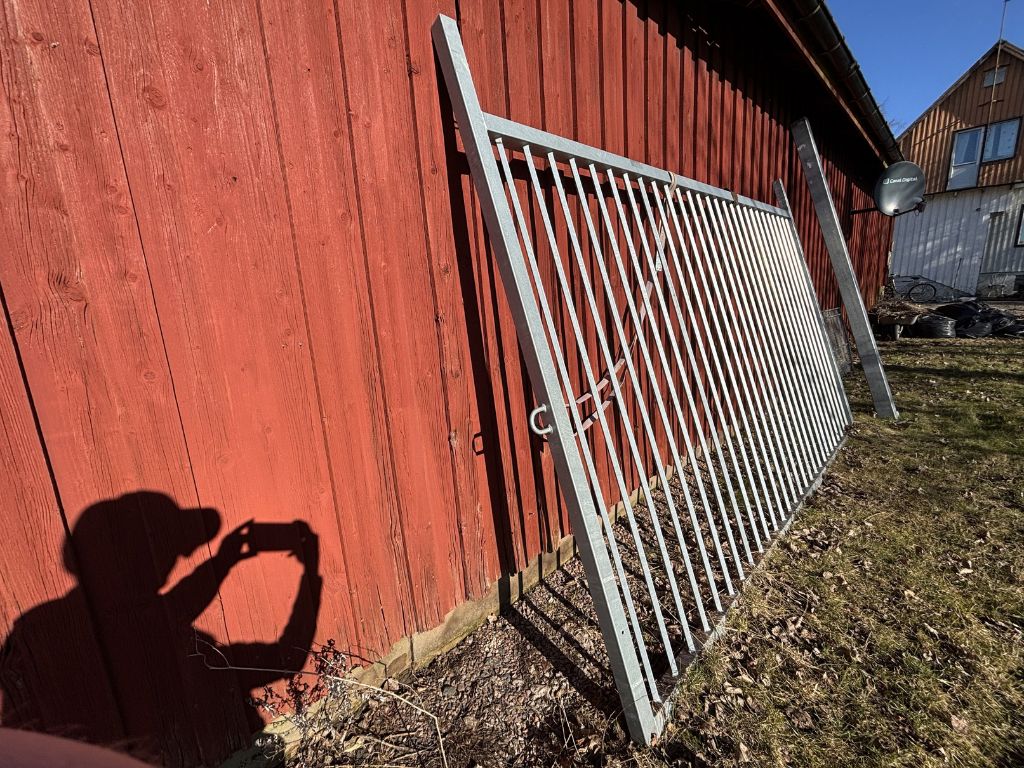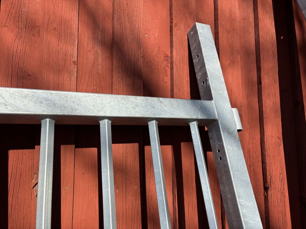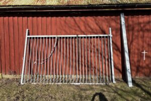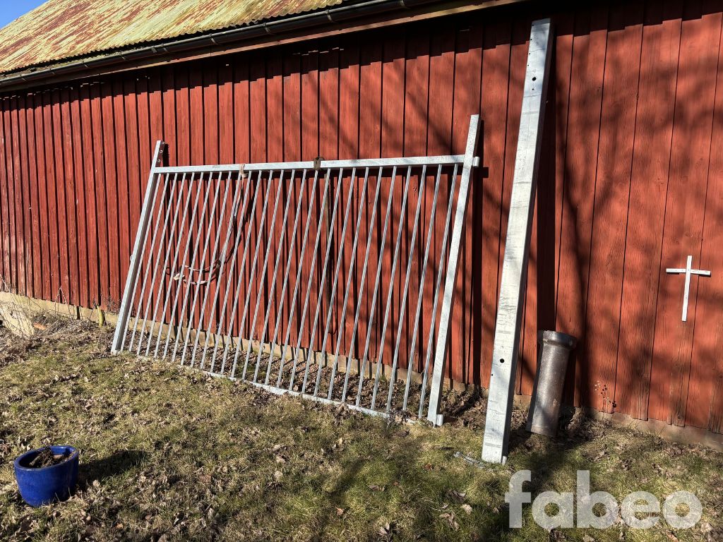 Fabeo, grind, gårdsgrind, metallgrind, varmförzinkad, galvaniserad grind, stålgrind, stolpar, infästning, bultar, lantbruk, inhägnad