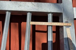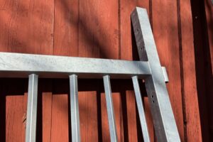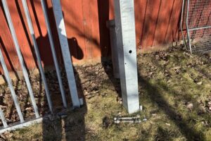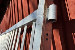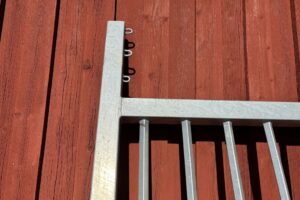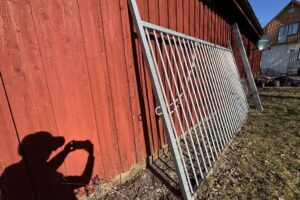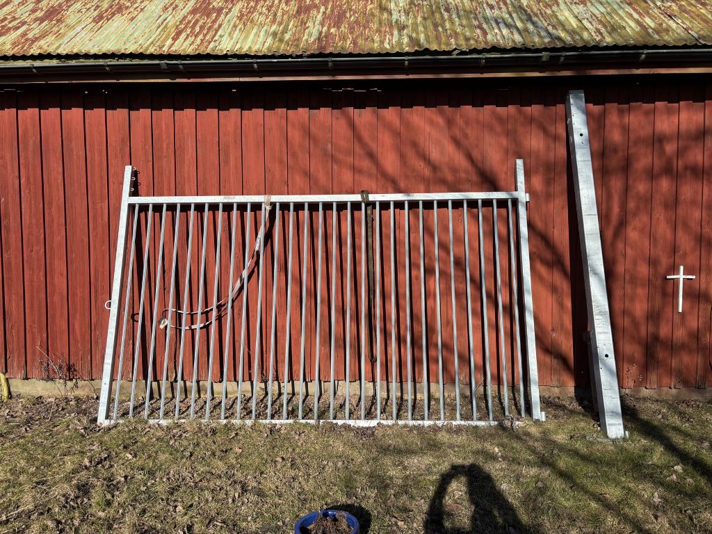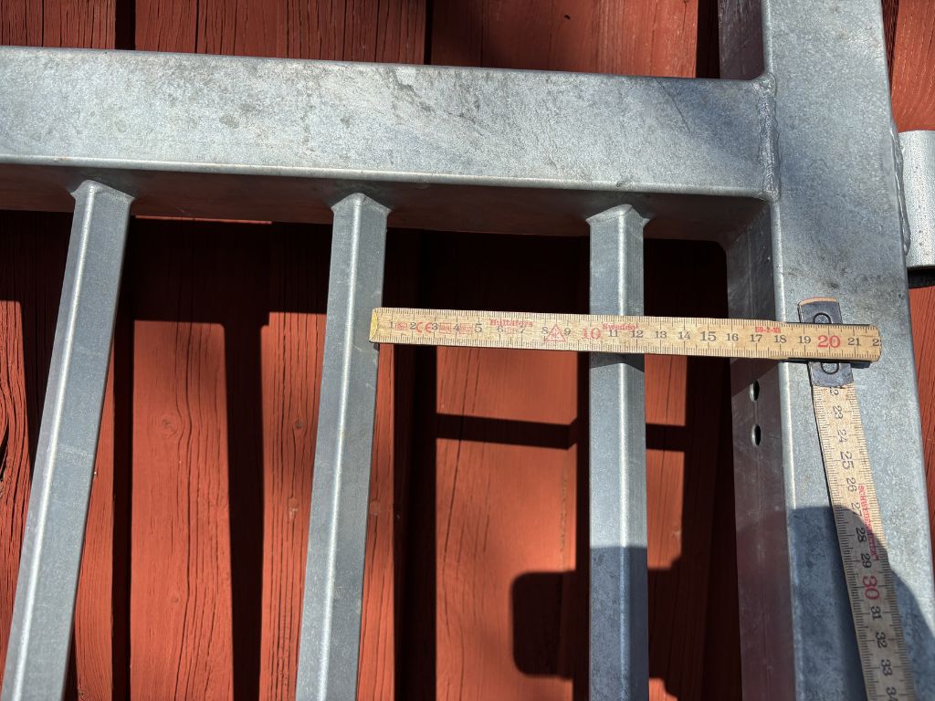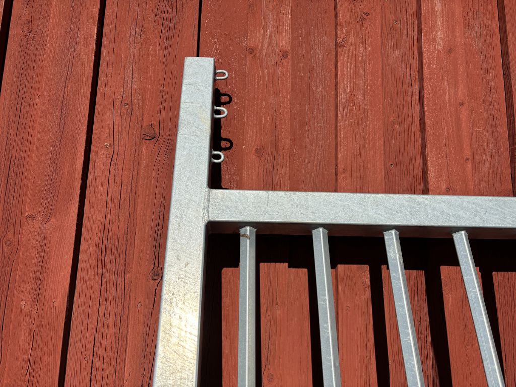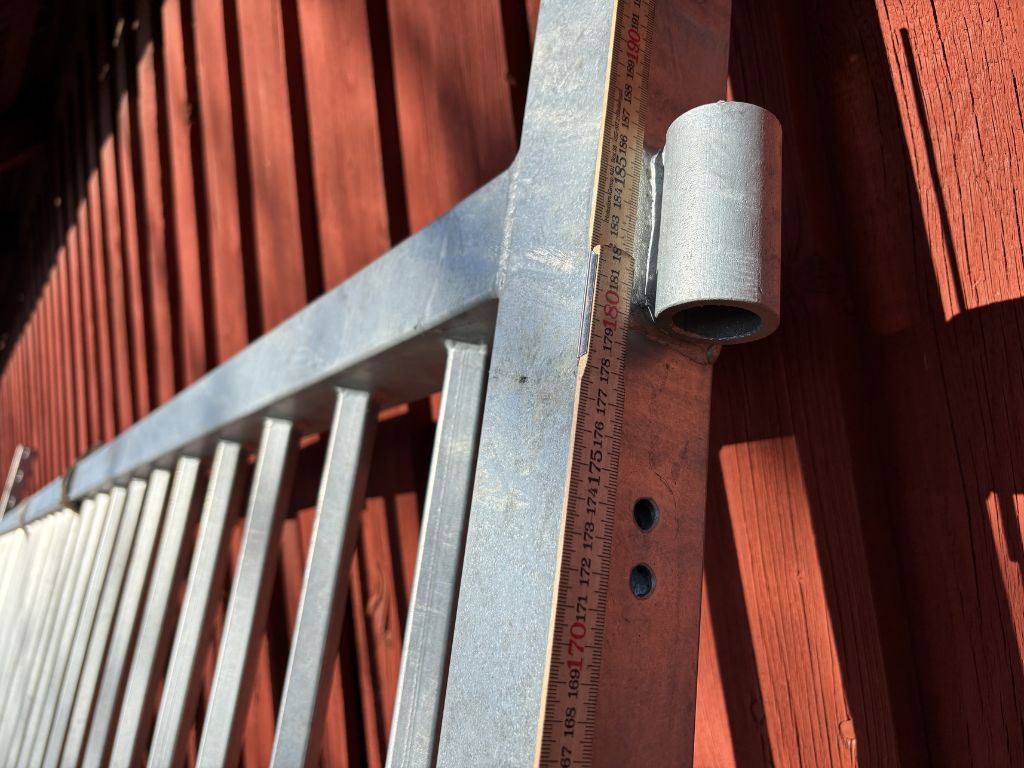 Fabeo, grind, gårdsgrind, metallgrind, varmförzinkad, galvaniserad grind, stålgrind, stolpar, infästning, bultar, lantbruk, inhägnad