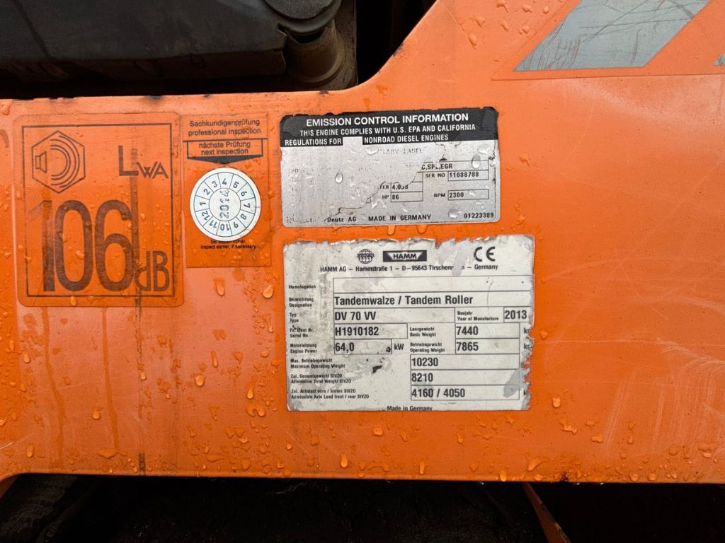 Fabeo, Hamm, DV70VV, Tandemvält, Asfaltvält, Vält, Hammtronic, Vibro, CE-märkt, Deutz