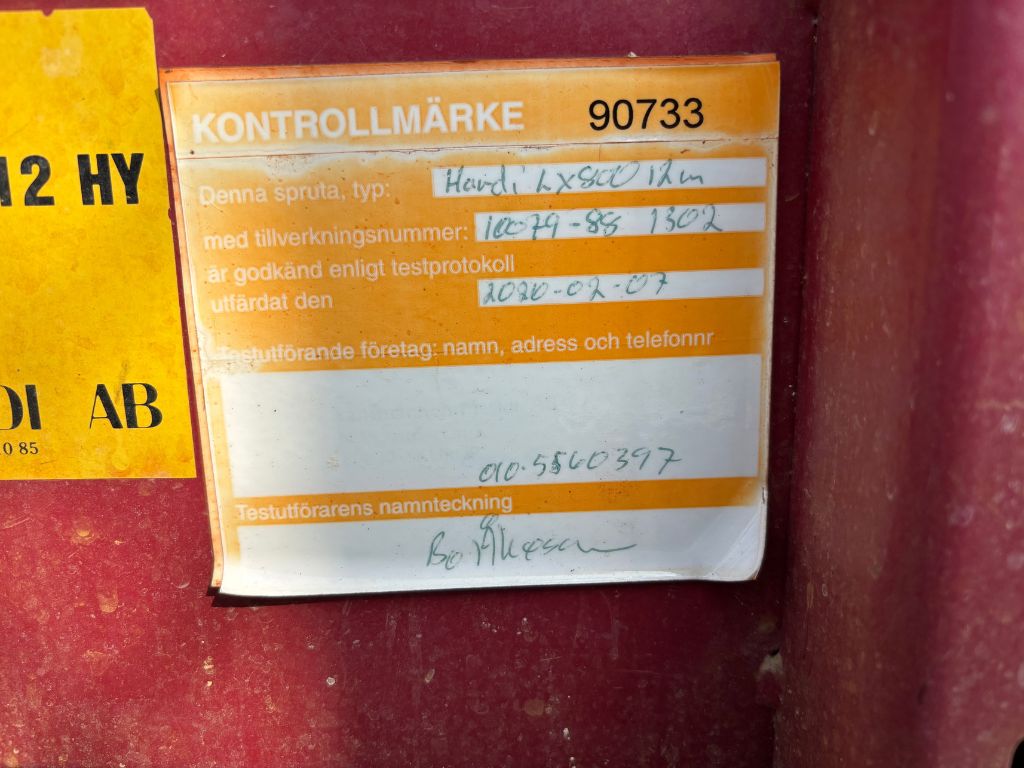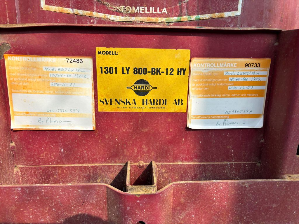 Fabeo, Hardi, Växtskyddsspruta, Spruta, 800 liter, 12 m bom, Hydraulisk