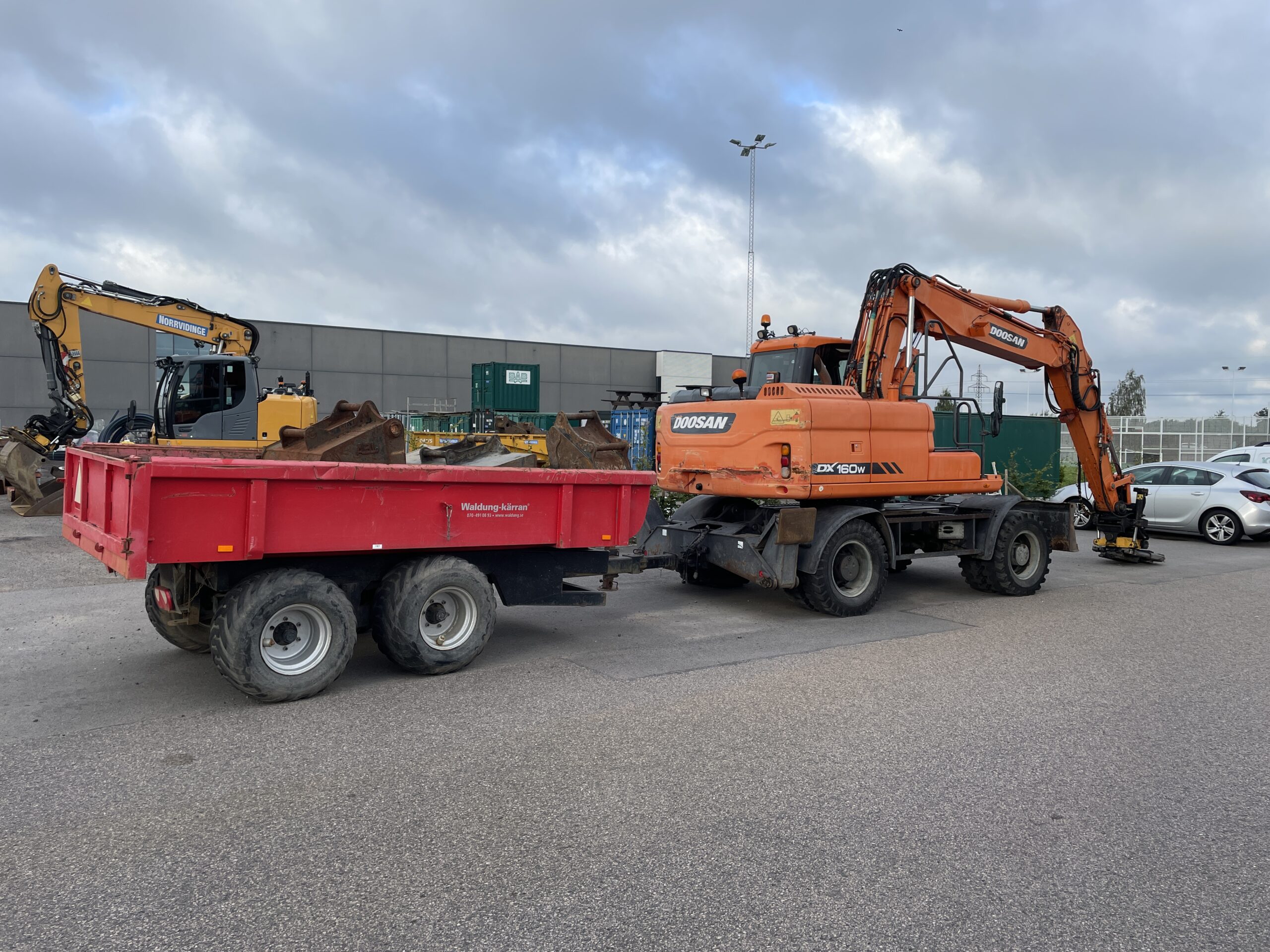 Sökord: Hjulgrävmaskin, Doosan, DX 160W, Waldung, Kärra,
