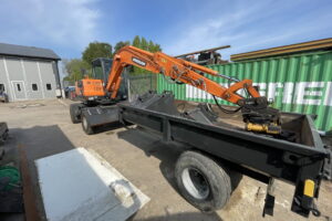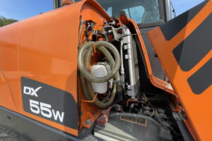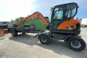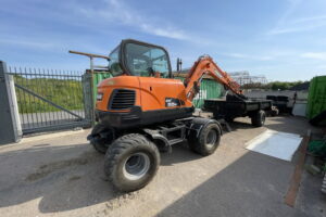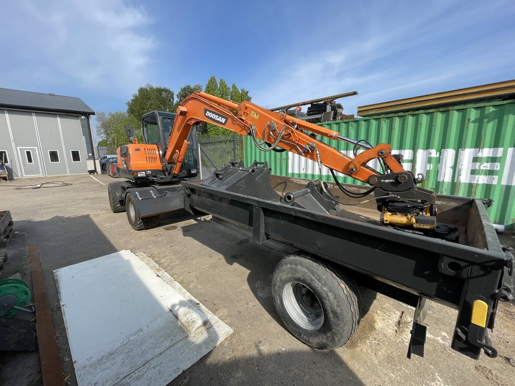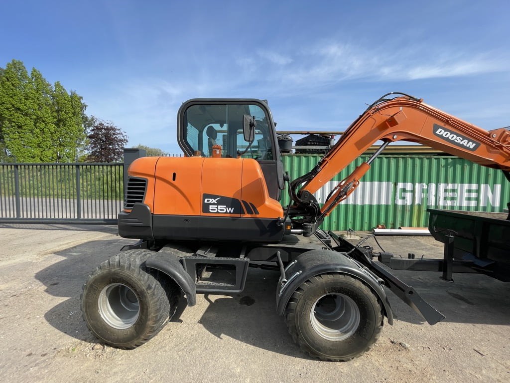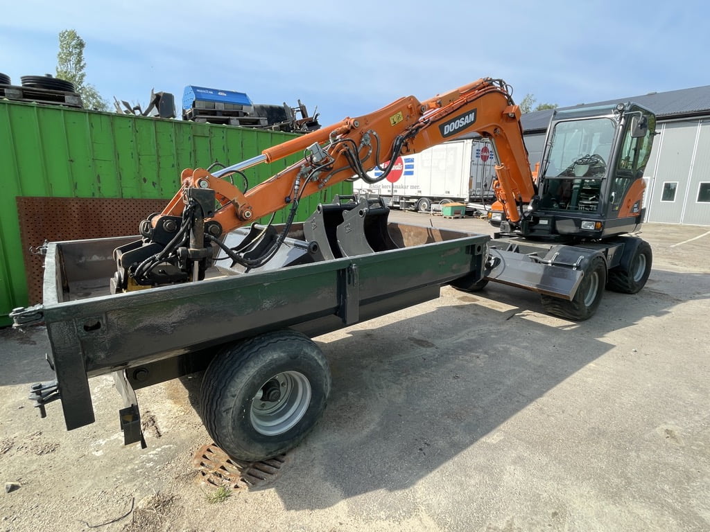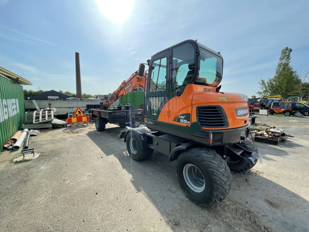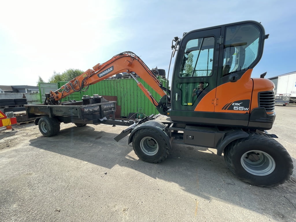 Doosan DX55 W med kärra och redskap