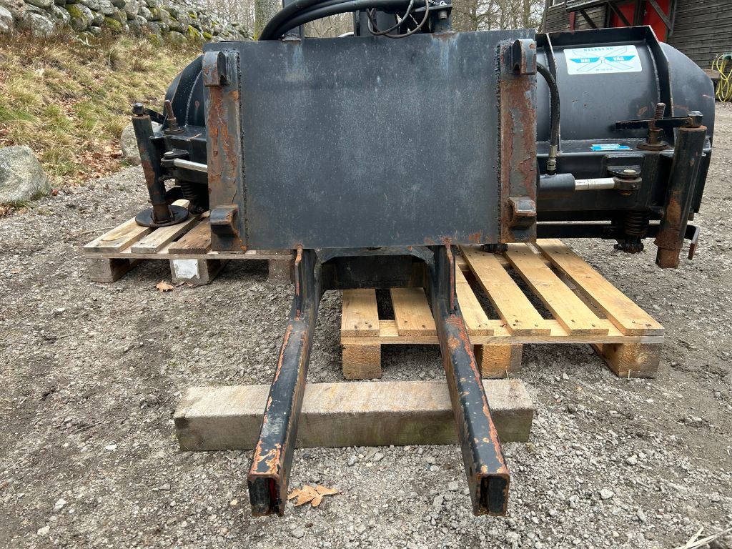 – Fästs idag på Trima/SMS-fäste men kan återställas till att fästas i hitchkrok med balk under traktorn genom att ta bort plattan för Trima/SMS.