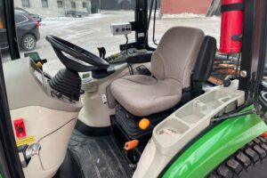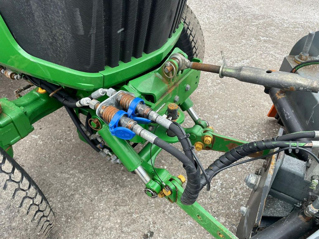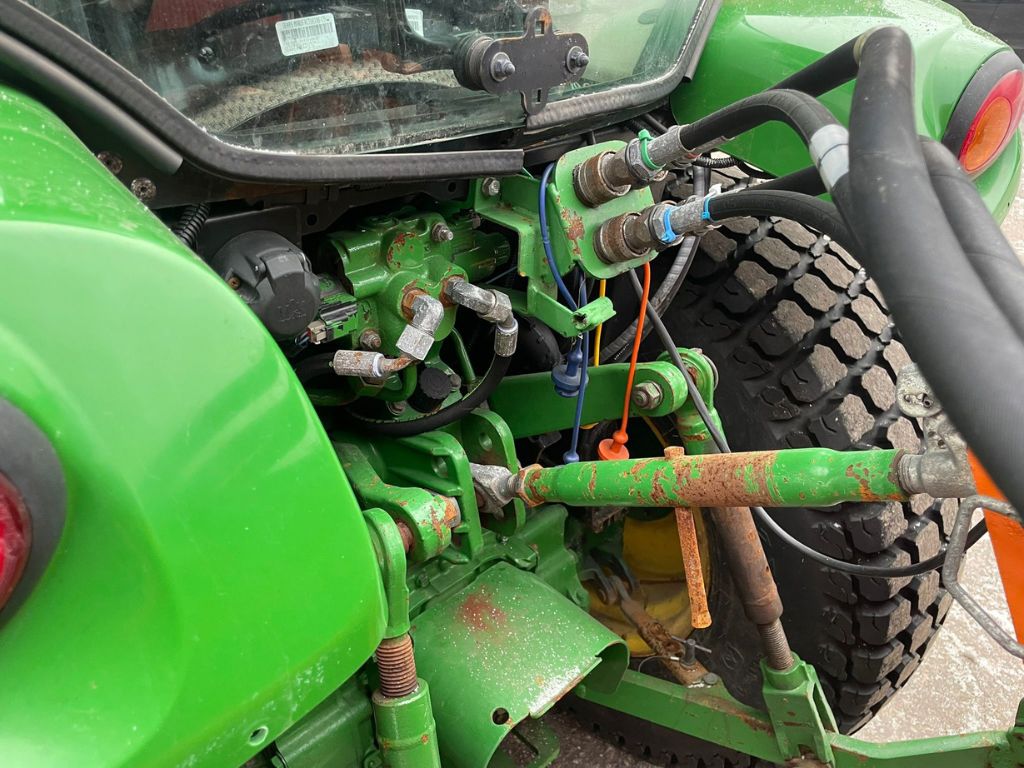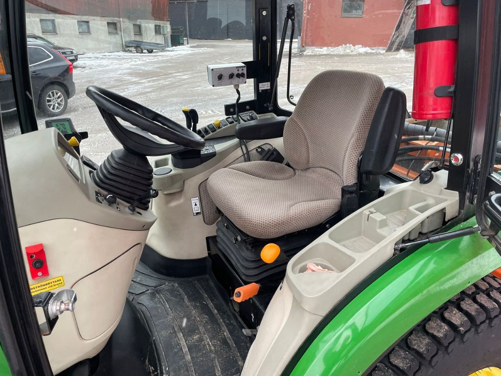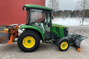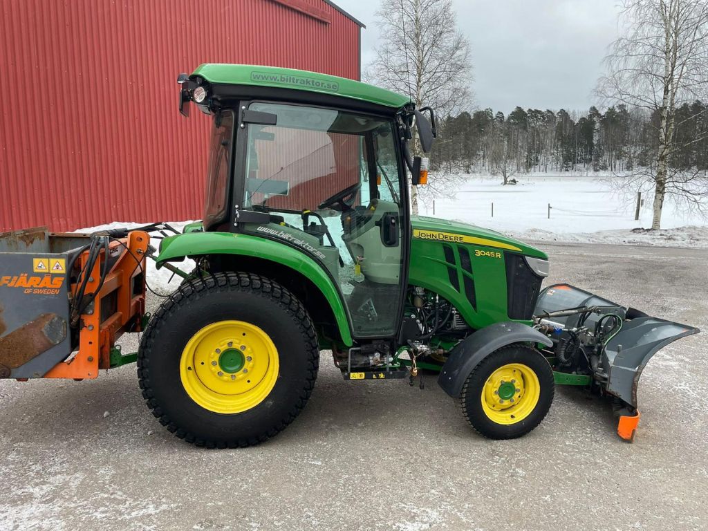 John Deere 3045R Kompakttraktor med vikplog, sandspridare och jordfräs