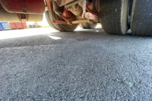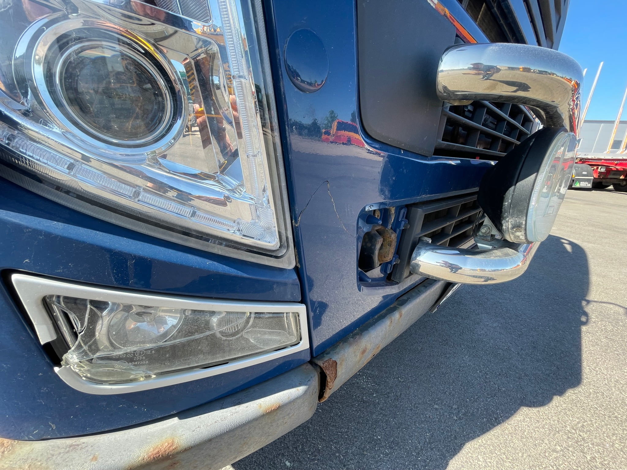 Kromat avgasrör bakom hytt
