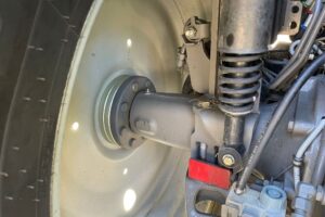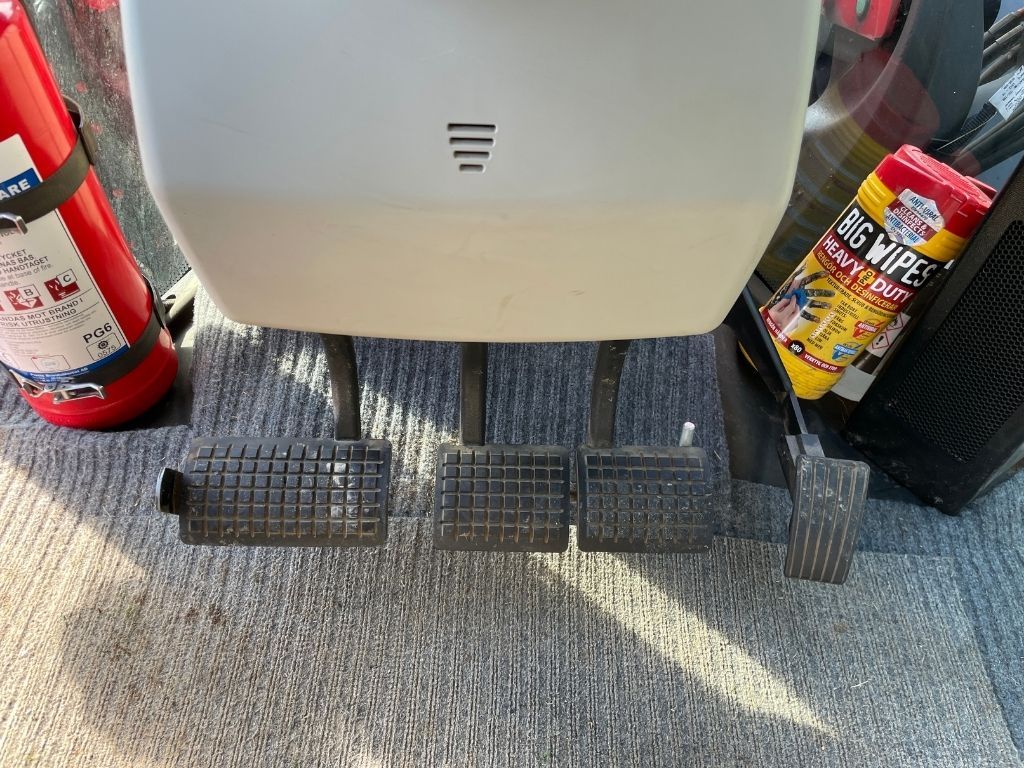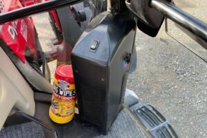 Knappen till hydrauliken på vänster bakskärm är inte inkopplad, funktionen styrs manuellt.