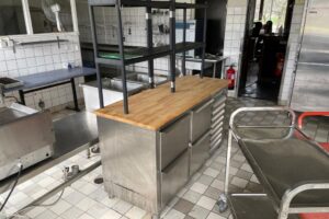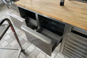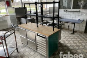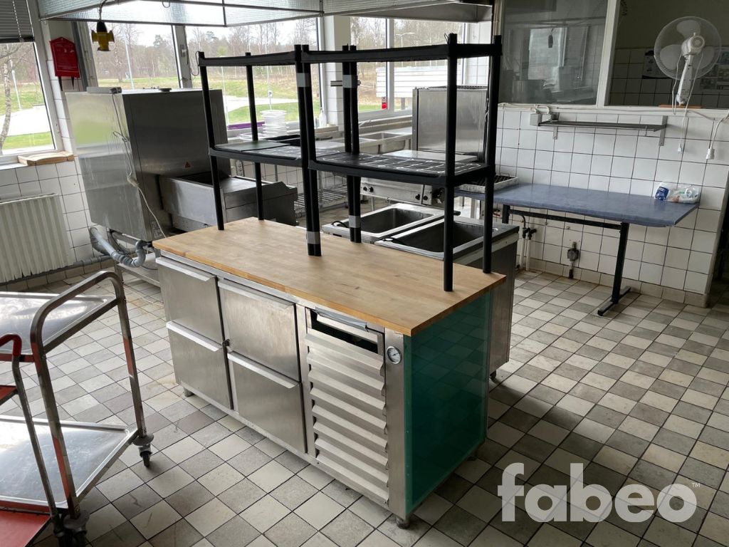 Fabeo, arbetsbänk, träskiva, rostfri bänk, serveringsstation, förvaringsbänk, storkök, restaurangutrustning