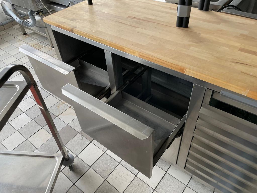Rostfri arbetsbänk med träskiva