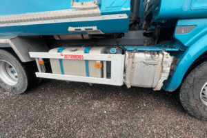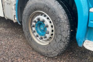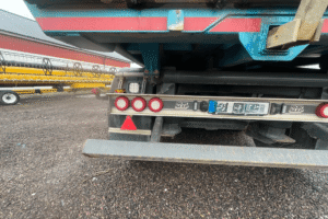 Finns företagsreklam på lastbilen, som är blurrad på bilderna