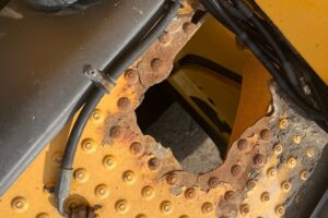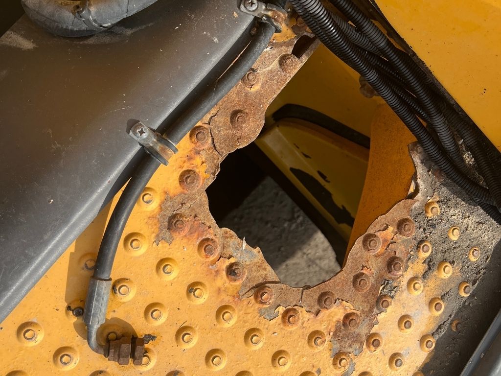 Maskinen har en del skönhetsfel och rostangrepp men annars rullat på utan problem