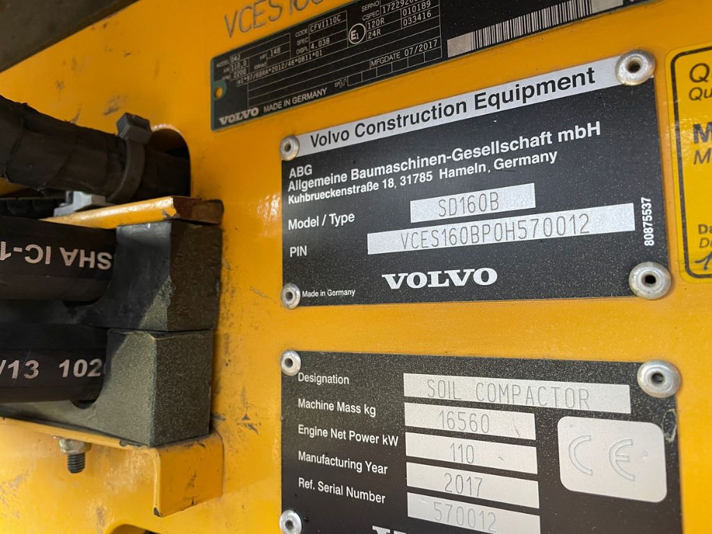 Fabeo, Volvo, Vält, Jordpackare, SD160B, Vibrationsvält, Volvo Construction Equipment, Diesel, Vibro, Packningsindikator